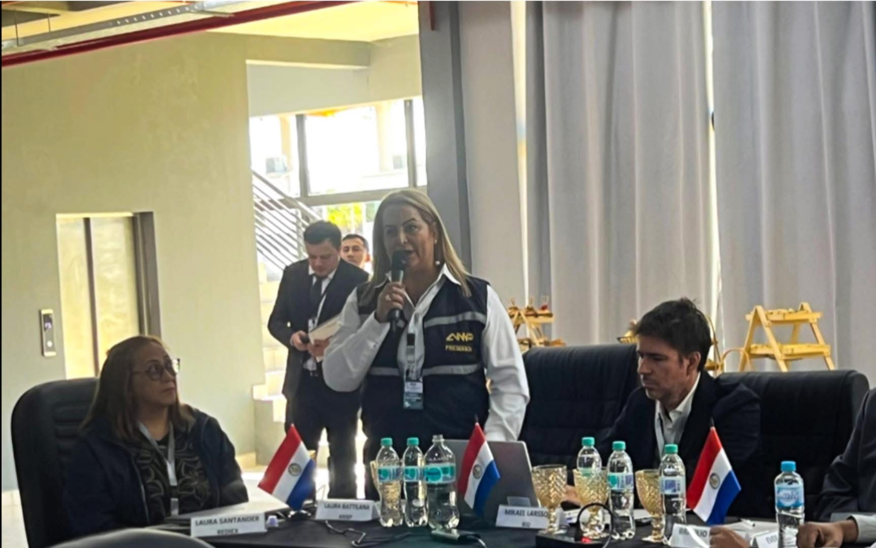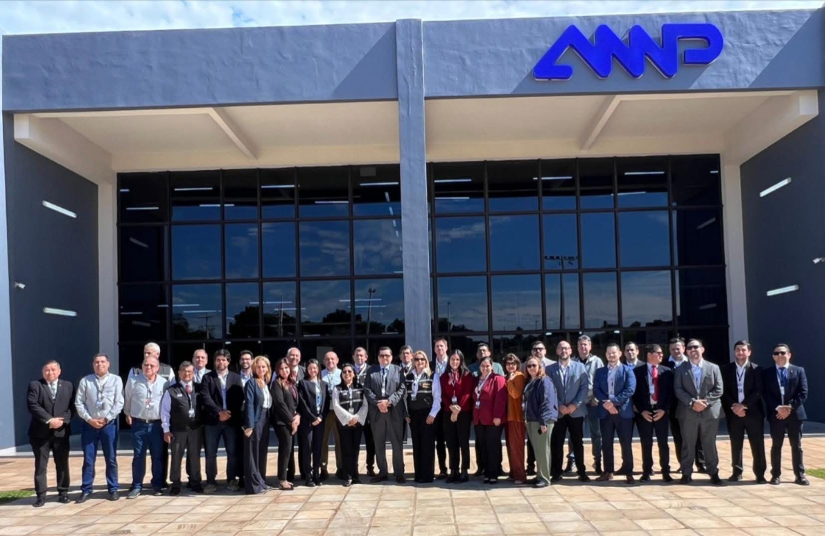 La delegación de la ANNP integrada por la Dra. Laura Battilana, Jefa de Gabinete; el Abg. Ángel Colmán, Gerente General; el Ing. Nelson Duarte, Gerente de TICs; la Lic. Gloria Caballero, Gerente de Planificación; la Mgtr. Jhancy Sanabria, Jefa de Relaciones Internacionales, además de otros funcionarios técnicos de la Institución.