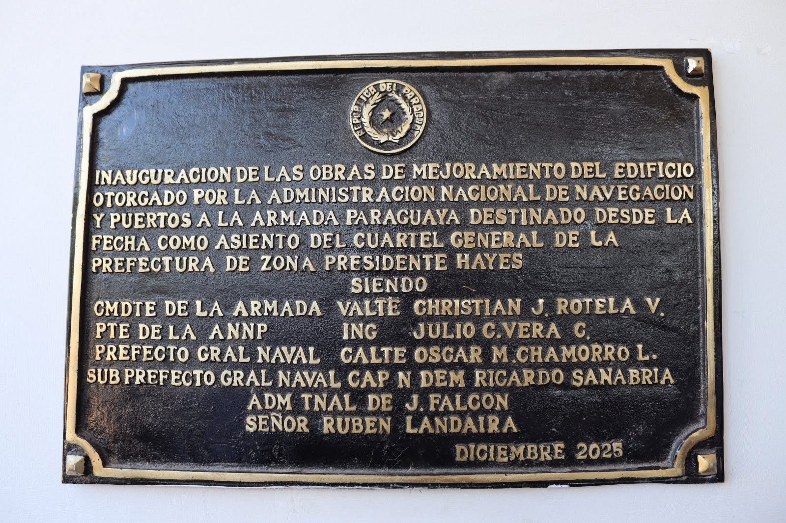 La ceremonia contó con la presencia del Comandante de la Armada, Valte. Cristhian José Rotela Valdez, el Jefe de Estado Mayor de la Armada, Valte. Albino Bogarin Flor, la Intendente de Falcón, Abg. Delia Ramírez y otros invitados especiales.
