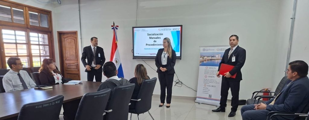 En fecha 22 de octubre del corriente, en el marco del cumplimiento de la Resolución del Directorio N° 285/2025 – Articulo N° 3, la Gerencia de Planificación encabezada por la Gerente, Lic. Gloria Caballero y funcionarios técnicos, Jefe de la Oficina de Organización y Métodos, Lic. Derlis Taboada y el Jefe de Coordinación de Empresas Publicas, Lic. Rolando Ramírez, realizaron la socialización de los manuales de procedimientos aprobados, para conocimiento e implementación.