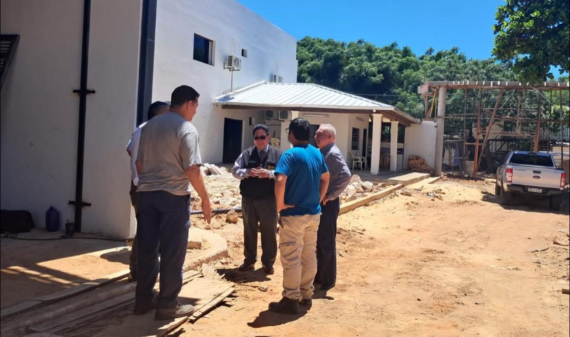 Acompañaron al Ing. Vera Cáceres , el Gerente de Obras Portuarias, Ing. Carlos Saldívar y otros profesionales involucrados en las tareas que componen el reacondicionamiento general de la infraestructura edilicia en Puerto Sajonia.